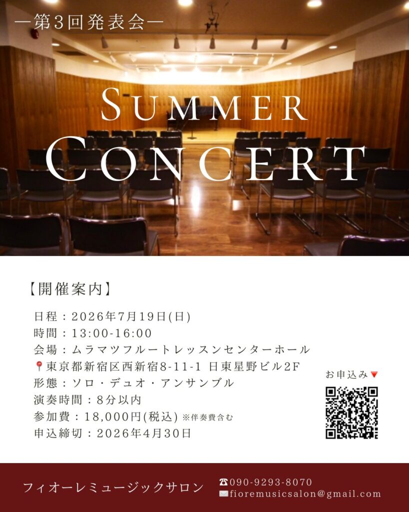 発表会が初めての方や、フルートを始められて間もない方も大歓迎です。